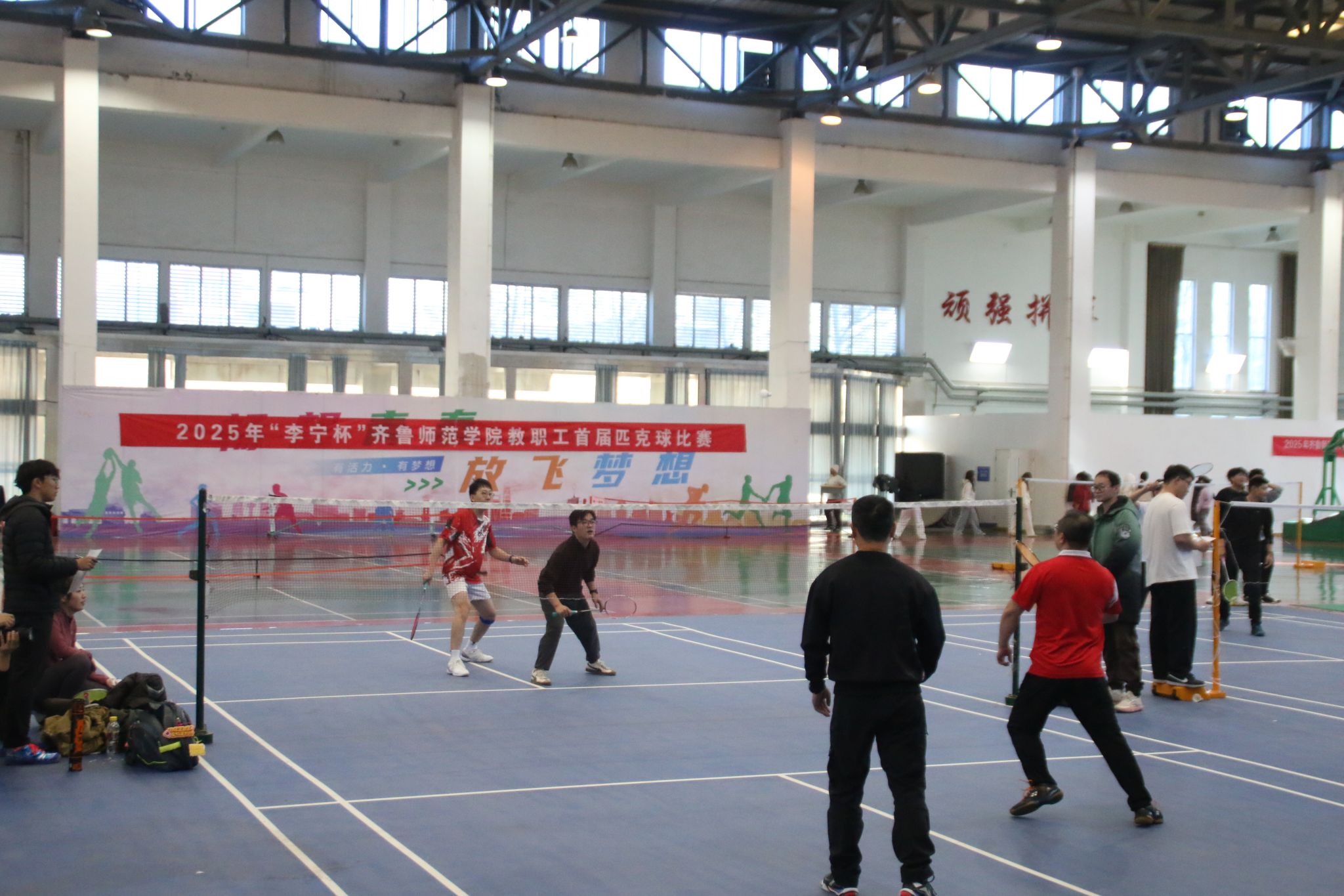 羽毛球比赛压轴举行,将活动月推向高潮。有力的扣杀、轻巧的吊球、精准的网前球和奋力的扑救,展现出教职工们出色的身体素质和运动风采。双打比赛中的战术配合与互相鼓励,更是团队精神的生动体现。
