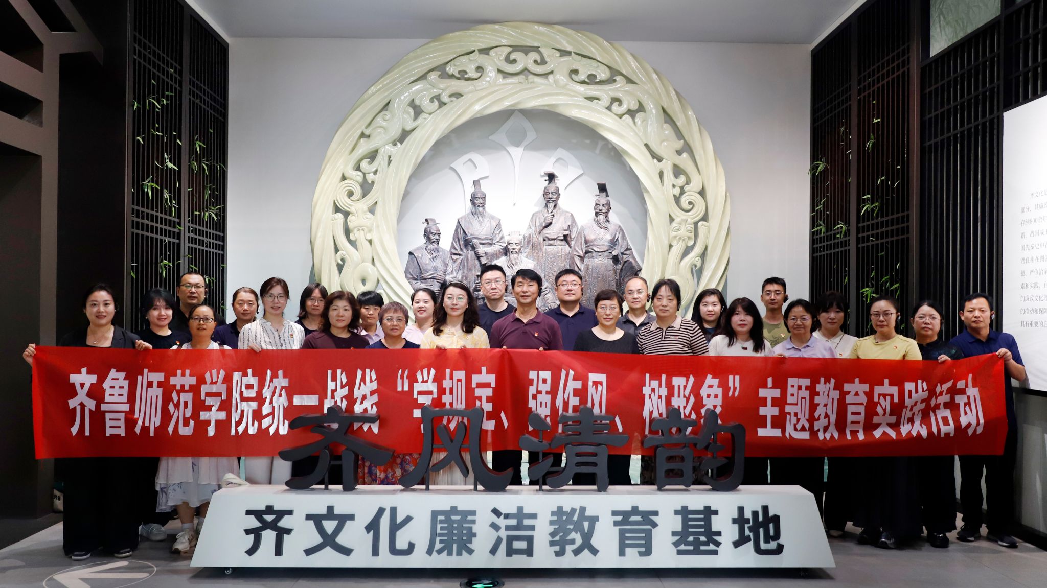为锲而不舍贯彻落实中央八项规定精神,赓续多党合作优良传统,推进民主党派、无党派人士“学规定、强作风、树形象”主题教育走深走实,7月8日,学校组织统一战线成员赴淄博市齐文化廉洁教育基地开展主题实践活动。学校党委委员、统战部部长宋新刚,党委委员、宣传部部长孙磊,各党委(党总支)统战委员,民主党派成员、无党派人士代表和校欧美同学会、知联会代表等30余人参加。